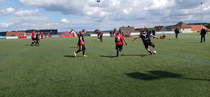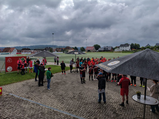 Unterbrochen wurde das Sportfest kurzzeitig für ein besonderes Erlebnis. Unmittelbar am Dorfparkstadion führte die Deutschland-Tour entlang. Während Spieler und Fans Spalier standen, wurde jedes vorbeifahrende Polizeifahrzeug ebenso begeistert abgefeiert wie die Radprofis selbst. Eine willkommene Abwechslung und gleichsam eine kleine Verschnaufpause für die 8 Mannschaften.