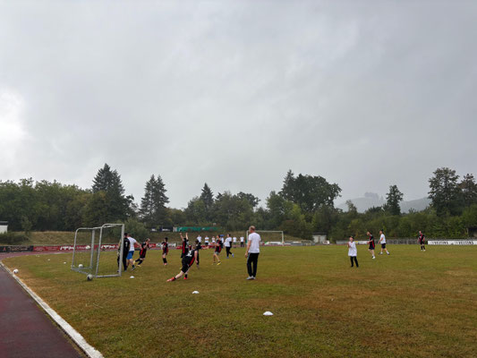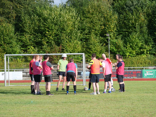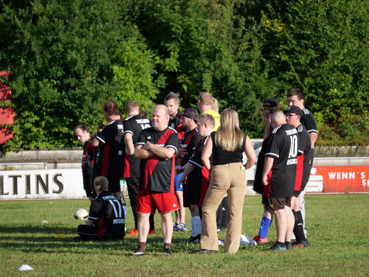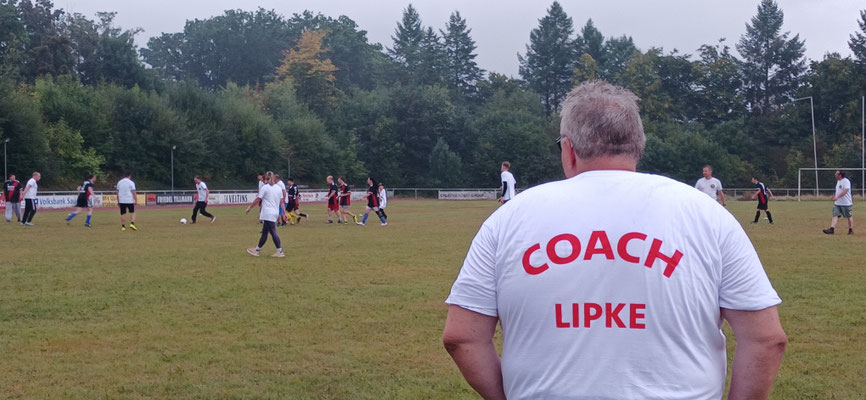 Auch sonst lief der Besuch äußerst entspannt und wertschätzend ab. Beim wöchentlichen Montagstraining war wenig anders als in den über 1.000 vorangegangenen Einheiten der letzten 27 Jahre. Außer, dass es Kaffee und Kuchen gab. Bei sommerlichen Temperaturen lief die Mannschaft schnell heiß und präsentierte sich gut aufgelegt.