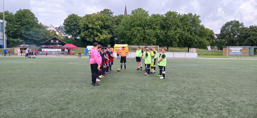 Den Ball habe man zwar nicht neu erfunden, aber einige Dinge wolle man in der Westfalen Fußball Extraklasse anders machen, schwörte der Coach die Mannschaften und ihre zahlreichen Fans ein. Fairplay und spannende Spiele auf Augenhöhe wurden im neuen Ligaformat versprochen. Mehr Ausgeglichenheit, mehr Spaß, mehr Inklusion und vor allem, dass wirklich alle mitmachen können. Mit einem Sportlerschwur der rund 70 Spielerinnen und Spielern ging es los. Drei Sätze, die alles beschreiben, worum es in der Westfalen Fußball Extraklasse gehen soll: