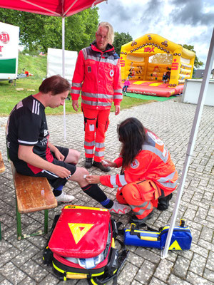 Für das etwaige Verarzten von diversen Sportverletzungen zeichnen die Sanitäter vom DRK Meschede verantwortlich. Auch wenn man sich in Reihen der Torfabrik die meisten Verletzungen durch Pech oder Ungeschick traditionell selbst zufügt, gilt selbstverständlich: sicher ist sicher.
