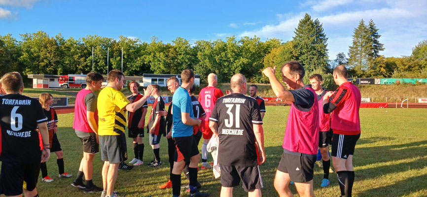 Das Freundschaftsspiel gegen die Feuerwehr der Stadt Meschede war ein ganz heißes Ding. An einem wunderbaren Fußballabend unterlag die Torfabrik den brandgefährlichen Feuerwehrkameraden mit 6:9. Trotz Niederlage blieben im Dünnefeldstadion keine Wünsche an ein aufregendes Fußballspiel unerfüllt.