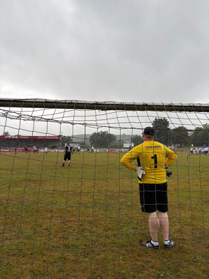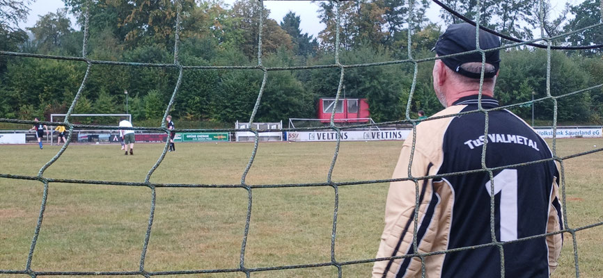 Beide Teams gaben alles, denn schließlich galt es den stattlichen Elmar-Kramer-Cup zu gewinnen. Diesen Pokal spielt die Torfabrik in unregelmäßigen Abständen und in Erinnerung an ihren 2006 verstorbenen Mitspieler und Ehrenspielführer aus. Elmar, selbst aus Sundern stammend, hätte das gewiss gefallen. Ein weiterer Ehemaliger war ebenfalls und leibhaftig dabei: Ex-Keeper Stefan Schau stand erneut als Schiedsrichter auf dem Feld und zeigte an der Pfeife wieder mal eine souveräne und ernorm lässige Leistung.