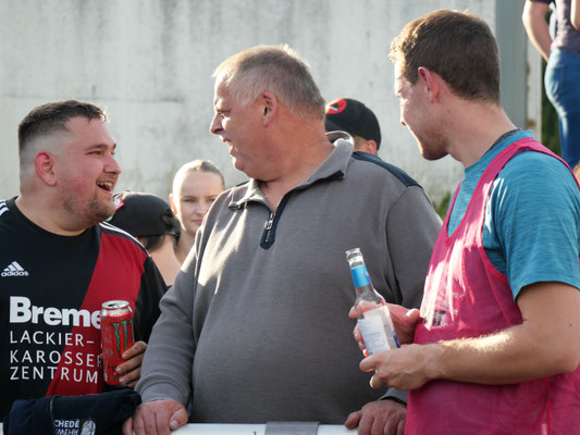 Dieses Versprechen wurde von den 8 Mannschaften vollumfänglich und vorbildlich erfüllt. Somit entstand von Beginn an eine angenehme und freundschaftliche Atmosphäre. Sowohl unter den Aktiven, als auch unter den Schlachtenbummlern der verschiedenen Fanlager. Pünktlich zum Anpfiff hatten diese sich allesamt in den VIP-Bereich verzogen und boten den Anblick einer gut gefüllten Tribüne. Zum VIP-Bereich wurde an diesem Tag nämlich automatisch jedes Fleckchen Stadion, das etwas Schatten bot.