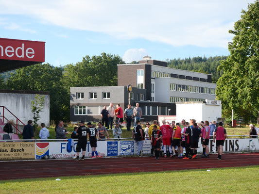 Ob es woanders schöner wäre? Wer vermag das zu sagen. Die ursprünglichen Pläne (Abriss vom Hertie-Gebäude und Stadionneubau im Mescheder Stadtzentrum) wurden mit Rücksicht auf Anwohnerinteressen nicht umgesetzt. Mit der Bövingloh-Gruppe aus Münster stand damals sogar schon ein Investor bereit. Man erinnert sich in Meschede. Diese Visionen wanderten vorerst zurück in die Schublade. Bei der Torfabrik bleibt also erst mal alles beim Alten. Trainiert wird mangels Alternativen weiterhin auf dem Klosterberg. Für uns ist diese Spielstätte jedenfalls einer der schönsten Hidden Places unter den Fußballplätzen im Hochsauerland und diesen Bericht allemal wert gewesen.