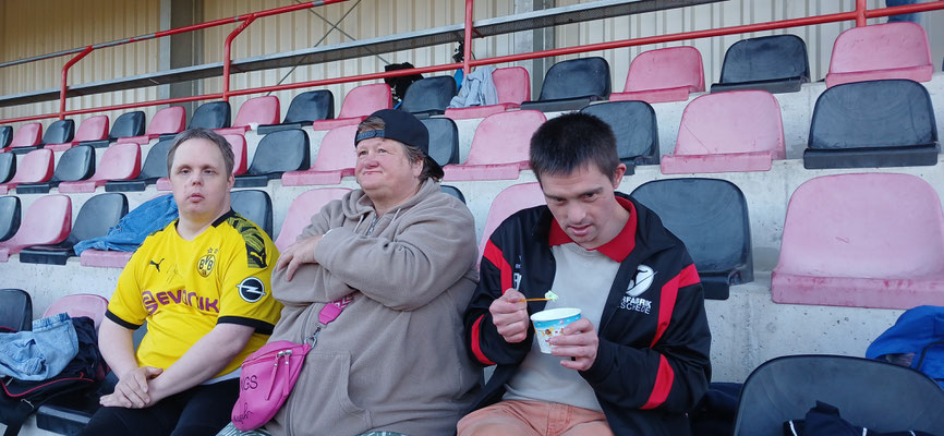 Generell präsentierte sich die Sportjugendherberge nach einer mehrjährigen Umbauzeit wieder als idealer Ort für die Torfabrikanten. Besonders das ausgesprochen nette Miteinander mit den Coaches und Jugendspielern von Eintracht Lokstedt aus Hamburg setzte dem Aufenthalt die Krone auf. Denn in Rheine bucht man nicht nur eine moderne, komfortable Unterkunft und hammermäßig leckeres Essen, sondern ein gutes Stück Inklusion gleich mit dazu. Auf dem großen Campus mit Soccercourt und zahlreichen Sport- und Klettergeräten, beim Tischtennis, Kickern oder - sehr witzig - beim Verstecken spielen war für jeden etwas dabei. Es wurde gegrillt, der Geburtstag von Mitspieler Steven gefeiert, Eis gegessen und natürlich auch das benachbarte Schwimmbad besucht.