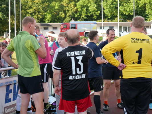Das Duell mit Familie Becker ging zwar in die Binsen, war aber auch nur die Zugabe auf ein wunderbares Fußballfest, an dem Menschen mit und ohne Handicap in freundschaftlicher Atmosphäre gemeinsam dem Ball nachjagten. Beim vorherigen Pokalturnier mit sechs gemischten Mannschaften kamen alle auf ihre Kosten. Nie waren Spaß, Zuschauerzahl und der Erlös für die Torfabrik größer. Familie Becker und der TV Kallenhardt haben wieder mal ein großartiges Benefizturnier organisiert, dass die Herzen höher schlagen und die Mannschaftskasse der Torfabrikanten klingeln ließ. Auch deshalb war die Niederlage dann am Ende doch noch irgendwie zu verschmerzen.