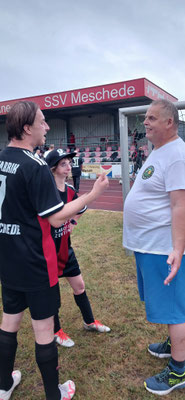 Nach einer kurzen Begrüßung waren die meisten Torfabrikanten mit dem Landesvater bereits per Du. Im Vereinsheim des SSV Meschede folgte eine Unterredung mit dem Trainerteam und weiteren Gästen. Bürgermeister Christoph Weber, Claudia Bertels als Direktorin vom Städtischen Gymnasium und Martin Kettler als Präsident des SSV Meschede zeigten auf, was in Meschede so alles in Sachen Inklusion läuft. Städtebaulich, aber auch in den Schulen und im Sport. Das Engagement aller Beteiligten verknüpft sich dabei in den Spielen um den Mescheder Weltpokal im September.
